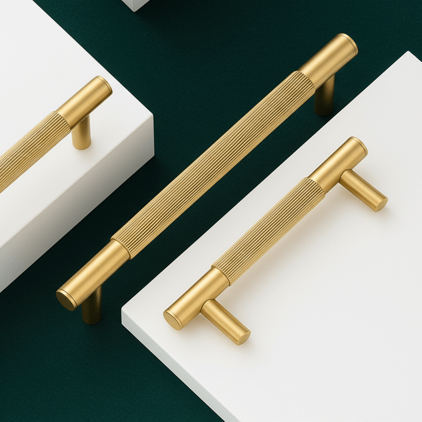 Håndtak i solid børstet messing med riflet overflate. Et moderne håndtak og en av våre absolutte bestselgere i butikken. Passer like godt på kjøkkendørene som på baderomskommoden eller på møbler. Den solide tyngden kombinert med de riflede detaljene går ikke ubemerket hen. Et premiumhåndtak for deg som verdsetter detaljrikdom og kvalitet.