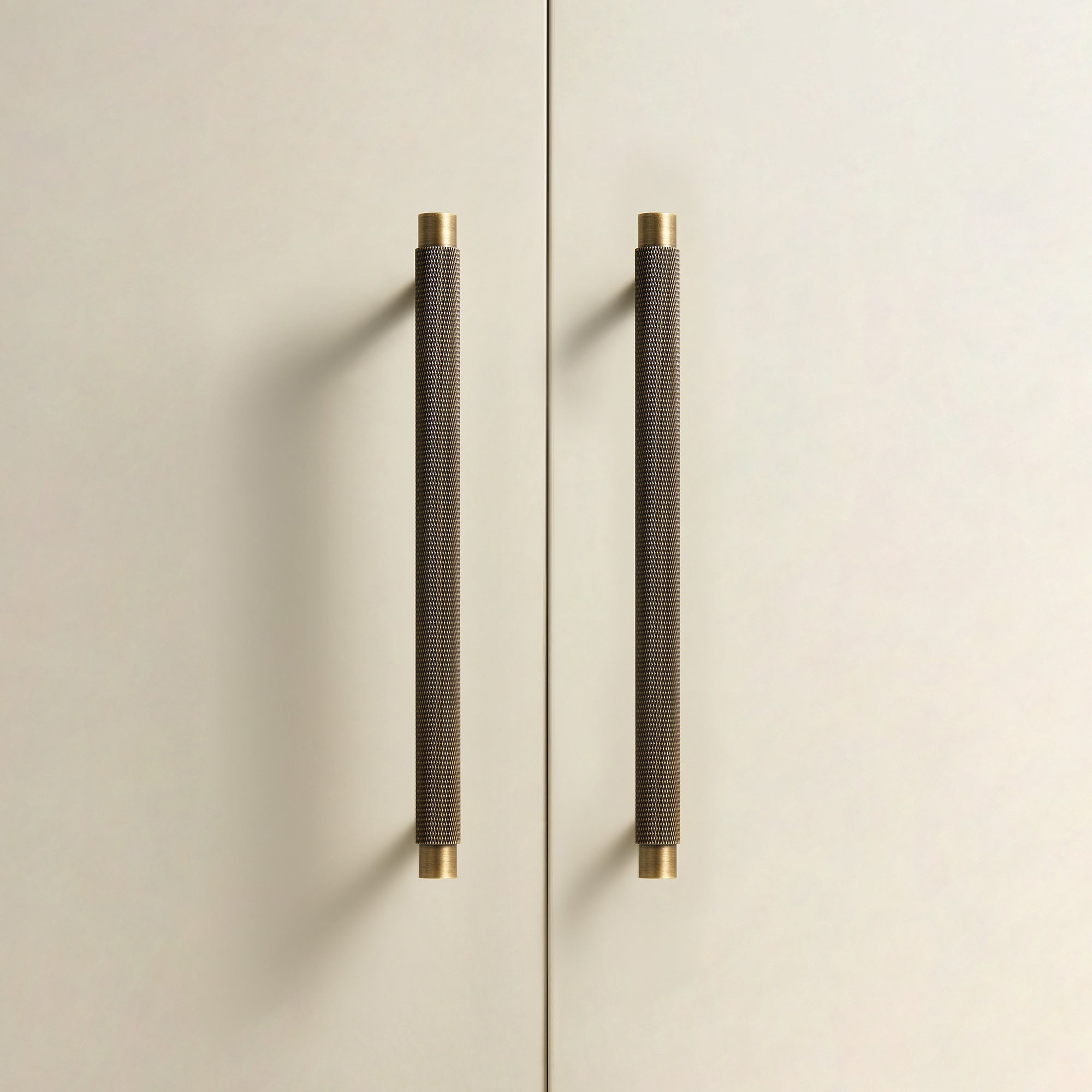 Exclusieve handgreep in massief messing met geribbelde textuur en gedraaide randen – een stijlvol detail dat karakter en krachtige elegantie toevoegt aan je interieur. Deze massieve messing handgreep is ontworpen om een duidelijk statement te maken, met een solide gewicht en verfijnde geribbelde details die een moderne en industriële uitstraling creëren. De gedraaide randen geven een extra vleugje elegantie en tillen het ontwerp naar een exclusief niveau, perfect voor degenen die een combinatie van hoogwaardige materialen en perfecte afwerking willen. Combineer het graag met andere producten in ons assortiment van geribbelde handgrepen, knoppen en deurklinken voor een samenhangende en verfijnde stijl door het hele huis.