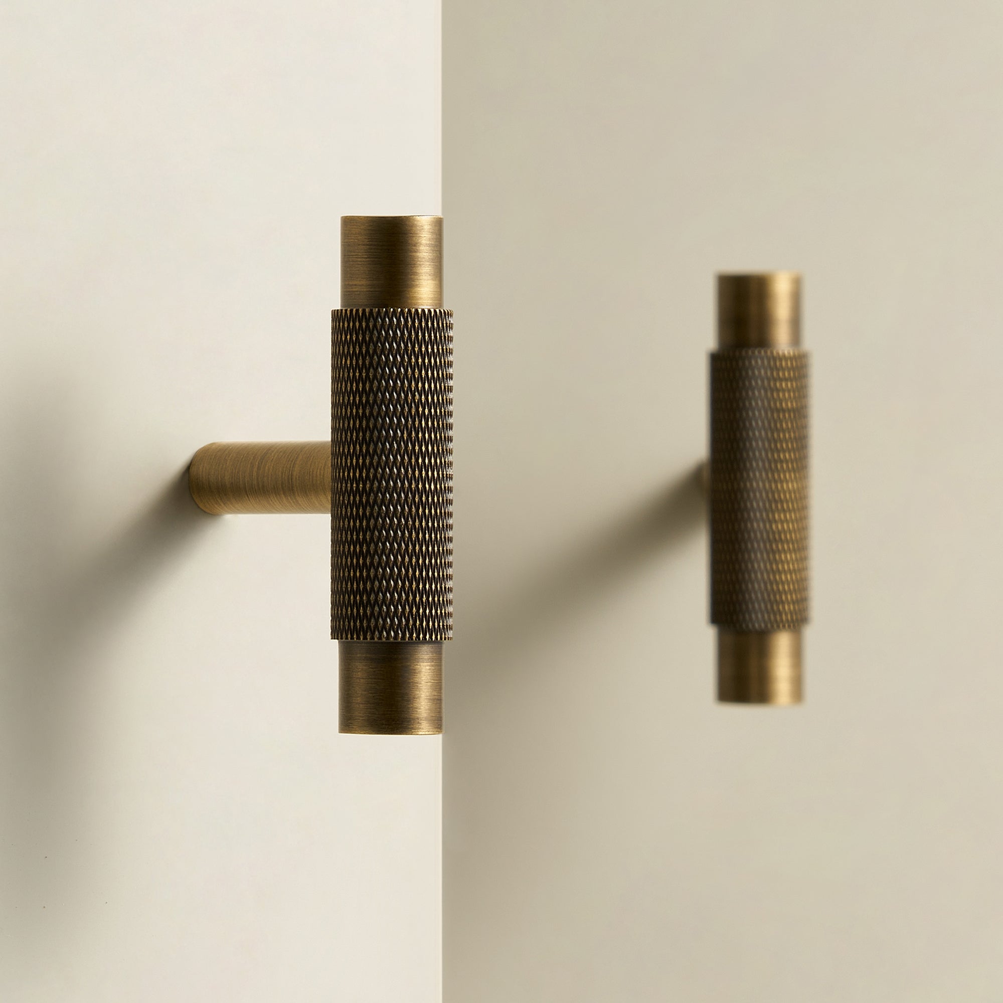 Ta ekskluzywna T-bar z litego mosiądzu z moletowaną powierzchnią łączy jakość z elegancją. Starannie opracowane detale nadają jej luksusowy charakter, który z pewnością przyciągnie uwagę. Zaleca się połączenie z innymi moletowanymi produktami z naszej oferty – uchwytami, gałkami i klamkami – aby stworzyć spójną i stylową aranżację wnętrza.